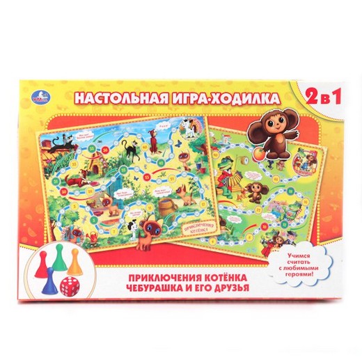 Купить Настольную игру Ходилка Приключение котенка и Чебурашка и его друзья 2 в 1в Новосибирске, Вы можете в магазине настольных и развивающих игр "Игры Почемучек"