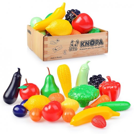 Наборы продуктов - популярная игрушка для ролевых игр. Дети с удовольствием используют муляжи овощей, фруктов, ягод в качестве ингредиентов для поварских игр, в качестве грузов для перевозки в машинках или для игр в магазин.