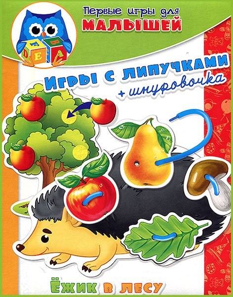 Игры с липучками "Ежик в лесу"- это отличный тренажер для развития мелкой моторики рук и внимания малыша. Придумывать разные истории и при этом шнуровать картинки - так интересно! На фигурку ежика нужно пришнуровывать яблочко, грушку, грибок и зеленый листик. Яблоня и фигурки-яблочки - это игра с липучками. Яблочки можно крепить к дереву и снимать многократно. Малышам так нравится звук отрываемой липучки!