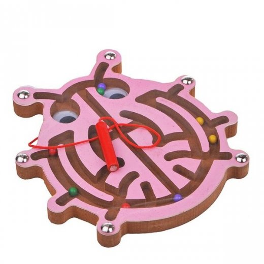 Лабиринт "Жучок" - увлекательная головоломка, которую ваш ребенок будет решать ни один вечер. Магнитный лабиринт в форме жучка, представляет из себя деревянную доску с множеством ходов-лабиринтов. К лабиринту шнурком прикреплена две палочка с магнитом на конце. Внутри лабиринта находятся разноцветные металлические шарики, которые можно передвигать по ходам-лабиринтам при помощи палочки. Для того чтобы шарики случайно не выпали, сверху лабиринт покрыт прозрачной пластмассой.