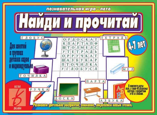 Настольная дидактическая игра "Найди и прочитай" (развивающая, обучающая игра-лото) поможет малышам развить зрительное восприятие, произвольное внимание, закрепить навыки чтения.