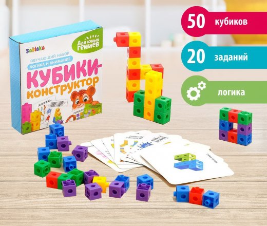 Набор Кубики конструктор Логика и внимание - это 20 разнообразных интеллектуальных заданий для маленького гения. А решить их нужно с помощью волшебных кубиков!