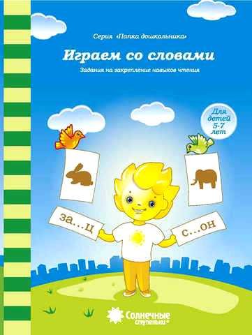 Папка дошкольника Играем со словами – входит в серию папок для дошкольного образования "Солнечные ступеньки". "Солнечные ступеньки" предназначены для всестороннего развития способностей ребенка. Все задания соответствуют задачам умственного развития и воспитания, определенным "Типовой программой воспитания и обучения в детском саду".