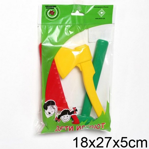 Размер: топор длиной 18 см, молоток длиной 18 см и ножовка длиной 20 см