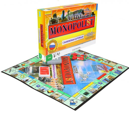 Монополия с банковскими картами - эксклюзивная русская версия всемирно известной настольной игры "Монополия" с использованием банковских кредитных карт вместо денег! Особенность - полностью безналичная система расчетов между игроками при помощи пластиковых карточек и банковского терминала.