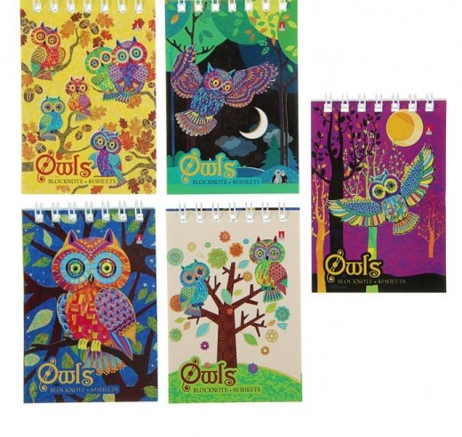 Купить Блокнот А7 40 листов на гребне Совы в ассортименте в Новосибирске Вы можете в магазине развивающих и настольных игр "Игры Почемучек".