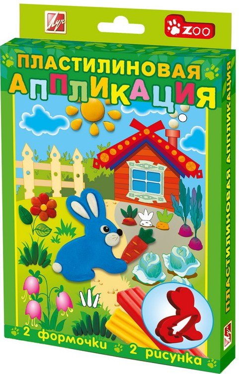 Пластилиновая аппликация Зайчик – замечательный подарок для юного любителя художественного ремесла. Этот набор может стать прекрасной альтернативой рисованию и классической аппликации. С его помощью ребенок сможет создать картинку, на которой будут изображен забавный зайчик с  морковкой возле домика, а подробная инструкция и пластиковые формочки помогут все сделать правильно.