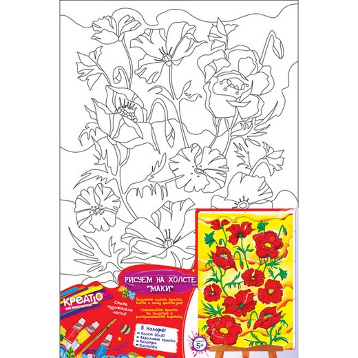 Роспись по холсту Маки - это хороший подарок для детей, который поможет увлекательно и интересно провести время. Ребенок с этим набором почувствует себя настоящим художником. Готовую картину можно подарить близким и тем самым их порадовать.