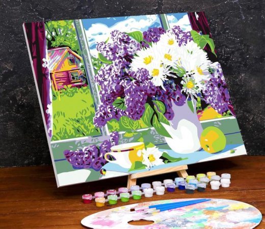Купить Картину по номерам Сирень на окне 40х50 см в Новосибирске Вы можете в магазине развивающих и настольных игр "Игры Почемучек"