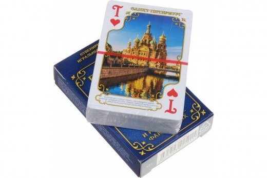 Колода игральных сувенирных карт «Города России» – идеальный вариант подарка для тех любителей азартных карточных развлечений, которые мечтают попутешествовать по России. Карты, сделанные из плотного многослойного картона, покрытого пластиком, украшены яркими иллюстрациями, на которых изображены лучшие достопримечательности разных городов нашей страны. Коробочка приятного синего цвета украшена национальным гербом.