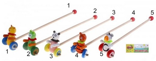- Каталка на палочке малая Звери с бубенцами