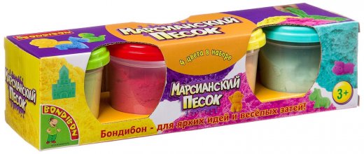 Купить Кинетический песок BONDIBON Марсианский, 4 цвета в Новосибирске Вы можете в магазине настольных и развивающих игр "Игры Почемучек"