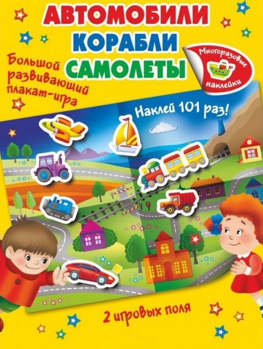 Купить Многоразовые наклейки Автомобили Корабли Самолеты в Новосибирске Вы можете в магазине развивающих и настольных игр "Игры Почемучек"