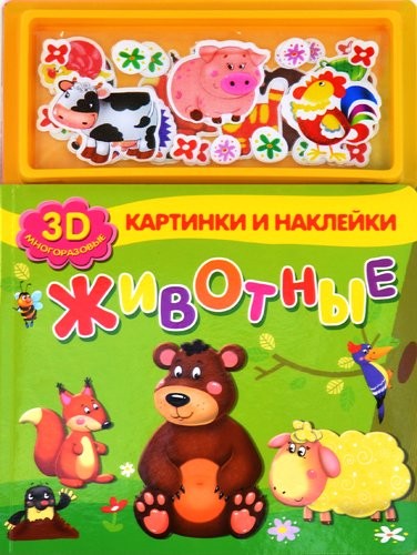 - Книжка 3Д Животные картинки и наклейки