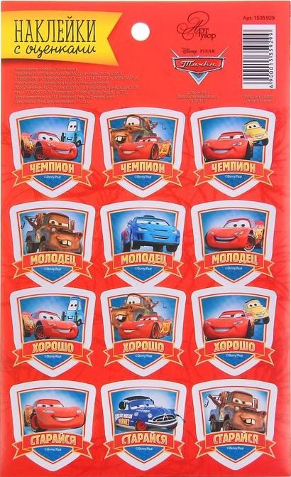 Купить Наклейки оценки Молодец Тачки в Новосибирске Вы можете в магазине развивающих и настольных игр "Игры Почемучек"