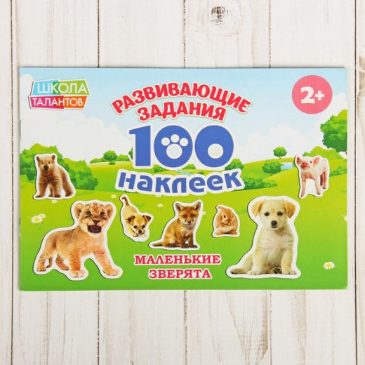 Купить развивающие задания "Маленькие зверята 100 наклеек" в Новосибирске Вы можете в магазине развивающих и настольных игр "Игры Почемучек".
