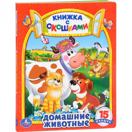 Книжка с окошками "Домашние животные" - заинтересует своим необычным видом многих малышей и детей постарше. Книга состоит из 10 страниц. На левой стороне каждого двухстраничного разворота находится красочное изображение какого-либо домашнего животного, а на правой страничке расположены три открывающихся окошка, за которыми ребенок должен найти еще одну картинку с этим питомцем. Каждое изображение животного снабжено веселым легко запоминающимся стихотворением.