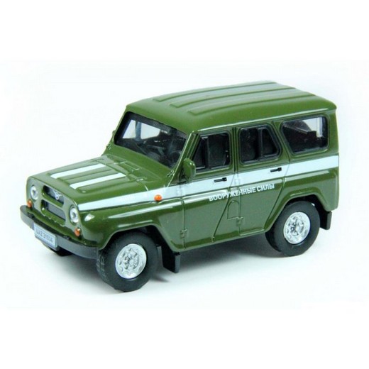 Инерционная металлическая модель автомобиля УАЗ-469 «Вооруженные силы» представляет собой подробно выполненную копию настоящего «русского джипа». Корпус машинки изготовлен из прочного металла и окрашен в характерный для военной техники защитный цвет. Стекла модели сделаны из прозрачного пластика, позволяющего рассмотреть салон. Чтобы задействовать инерционный механизм, нужно поставить машинку на ровную поверхность, откатить ее назад, а затем отпустить — и она самостоятельно поедет вперед.