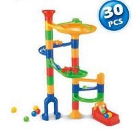 Набор сочетает в себе не только особенности конструктора, но и головоломки. Из деталей набора ребенок сможет собрать большие горки, по которым можно будет запускать маленькие шарики.
