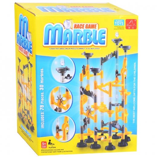 Состав набора: 78 деталей для постройки горок, 30 шариков (d=1 см.)
