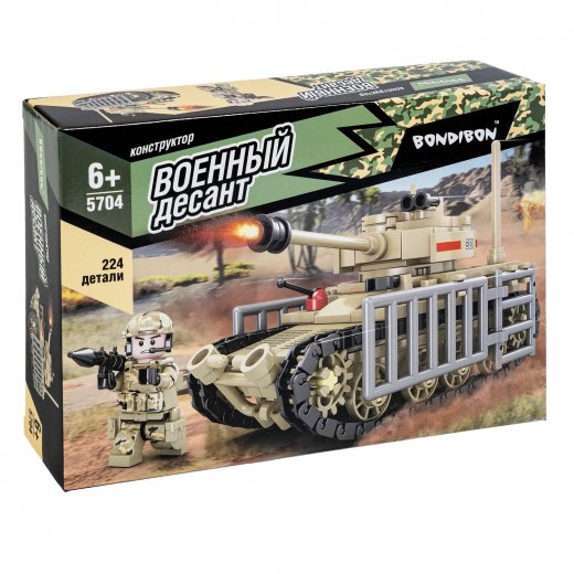 - Конструктор Bondibon Военный Десант Танк 224 дет