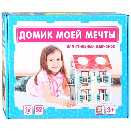 Большой красивый дом со ставнями и объёмными лоджиями можно построить своими руками из деталей замечательного набора «Домик моей мечты» серии «3D-конструкторы». Стоит соединить при помощи несложных креплений крупные основные детали – стены, пол, потолок, крышу, – и вот уже почти готов настоящий двухэтажный особняк с красочно оформленным фасадом. Собранный домик имеет цельную заднюю стенку и прикреплённые к ней боковые, а передняя стена – условная, открыта для того, чтобы удобно было играть внутри жилища.