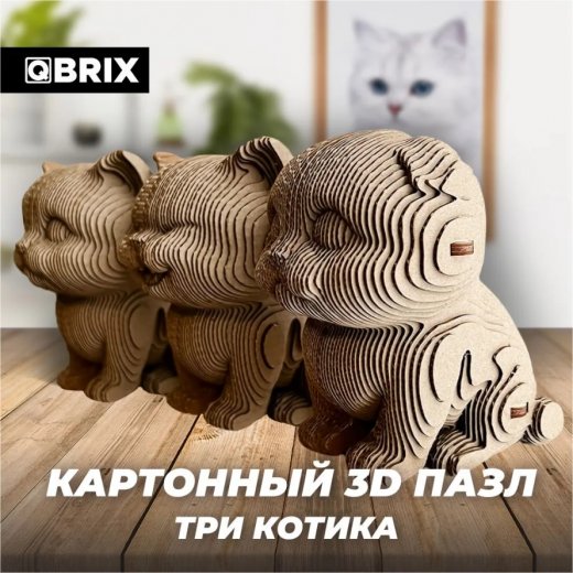 Купить Картонный 3Д конструктор Три котика Qbrix в Новосибирске Вы можете в магазине настольных и развивающих игр "Игры Почемучек"
