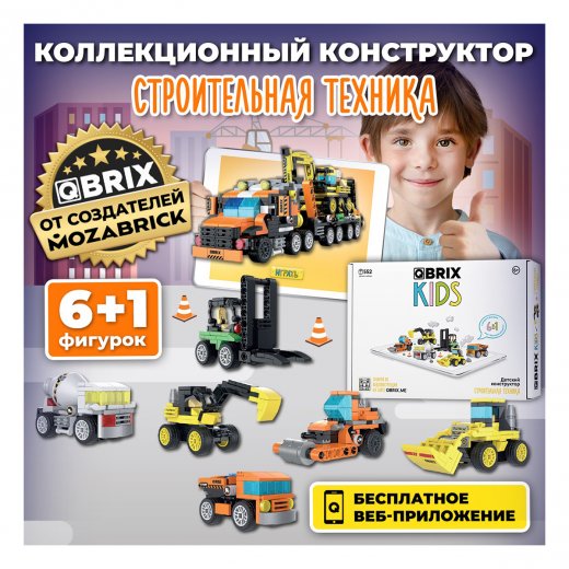 В наборе Строительная техника тебя ждут Бульдозер, Экскаватор, Погрузчик, Бетономешалка, Каток и самосвал или один огромный супертрак. Их ты можешь собрать с помощью понятной видеоинструкции с интересными фактами о каждом. У тебя получится 6 маленьких фигурок или одна большая! Пошаговые видеоинструкции можно смотреть с любого устройства: телефона, планшета или компьютера. Также в каждый набор вложены бумажные инструкции с понятными схемами сборки. Познавай мир и наслаждайся творчеством вместе с QBRIX! Собери всю коллекцию фигурок из конструктора. Наши наборы обязательно понравятся вашему ребенку и станут любимой игрушкой для мальчиков и девочек. Это отличный способ провести время весело и с пользой. Конструктор состоит из разноцветных элементов, которые легко собираются и разбираются, поэтому он помогает развивать мелкую моторику рук. Набор изготовлен из безопасного ABS пластика без запаха. Коллекционный набор безопасен для детей, а родителям подарит время для отдыха.