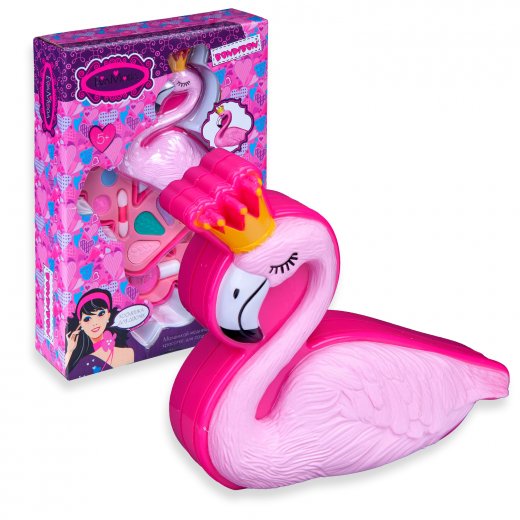 Королевский подарок для юной принцессы! Очаровательный двухъярусный набор в виде фламинго подарит маленькой моднице море восторга и познакомит с красочным миром макияжа. Внутри - пять оттенков теней, кисточка для нанесения макияжа, два оттенка губной помады, блеск для губ и лак для ногтей. Это идеальный набор для первых проб в мире макияжа. Осталось применить творческий подход и создать свой неповторимый образ!