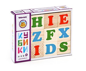 Кубики "Алфавит английский" - представляет собой набор из 12 кубиков, на гранях которых изображены буквы английского алфавита.