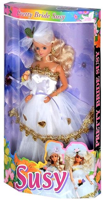 Кукла Сьюзи "Невеста" представлена в двух видах, модели различаются деталями свадебных нарядов. В комплекте к Сьюзи идёт свадебный букет. Такая игрушка вызывает массу положительных эмоций и не оставит равнодушной ни одну девочку. У куклы шарнирное тело. Голова поворачивается, руки и ноги сгибаются, что позволяет придавать кукле различные естественные позы. . С такой замечательной куклой девочка проведет множество часов, разыгрывая самые неожиданные игровые ситуации.
