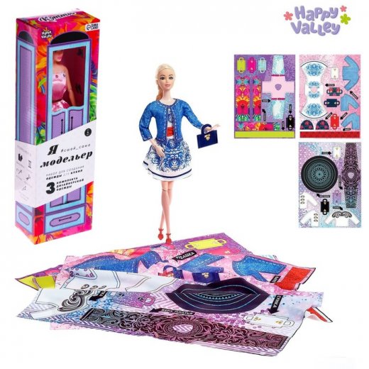 С набором «Я модельер» малышка самостоятельно сошьёт одежду для куклы Анны. В комплекте идут 3 готовых полотна ткани с уже нанесёнными выкройками.