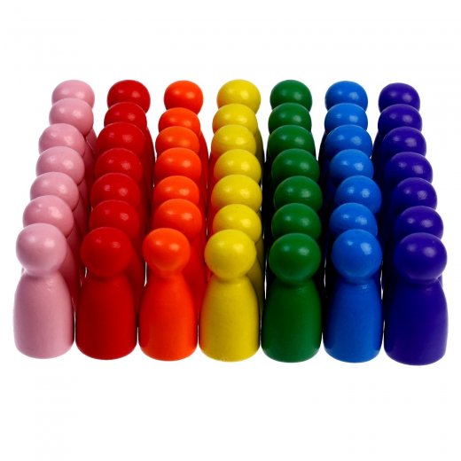 В наборе 50 фигурных пешек. Все детали сделаны из прочного и экологичного материала — дерева — и покрыты нетоксичными красками.