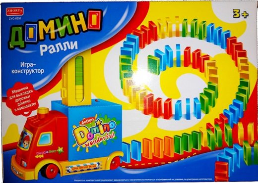 Домино Ралли – это весьма интересная и занимательная игрушка. Это машинка на радиоуправлении, раскладывающая костяшки домино в ряд. Костяшки нужно предварительно загрузить в специальный контейнер. Костяшки разноцветные без картинок и точек, и если хотите то можно расписать их цифрами или точками как обыкновенные доминошки. И соответственно играть в домино по правилам.
