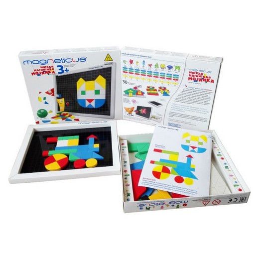 С магнитной мозаикой Magneticus маленькие художники смогут легко воплотить в реальность свои самые смелые творческие замыслы. Создавать из разноцветных геометрических фигур оригинальные мозаичные рисунки легко и интересно. "Мозаика 3+ 5 цветов Листок с примерами" состоит из 145 деталей – это набор простейших геометрических фигур пяти цветов, который позволяет детям создавать чудесные образы. С их помощью ребенок научится собирать фигурки животных, домики, цветы, бабочку, снеговика и другие конструкции. В комплекте есть листок с примерами, поэтому дети будут вести первоначальную сборку по инструкции, а потом начнут воплощать в жизнь собственные творческие идеи. Более 30 вариантов фигур! Все элементы сделаны из экологически чистых и безопасных материалов, они без труда крепятся на металлическую поверхность.
