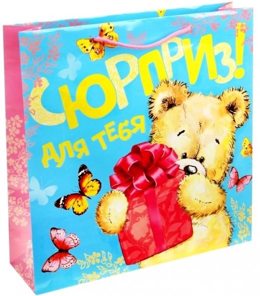Пакет подарочный Мишка сюрприз - можно использовать как небольшой презент или как красивую упаковку под непосредственный подарок. Ламинированные бумажные пакеты — лидеры по популярности среди подарочной упаковки. Выполнен он в ярких и красочных тонах, с изображением милого мишки, держащего в руках подарок.