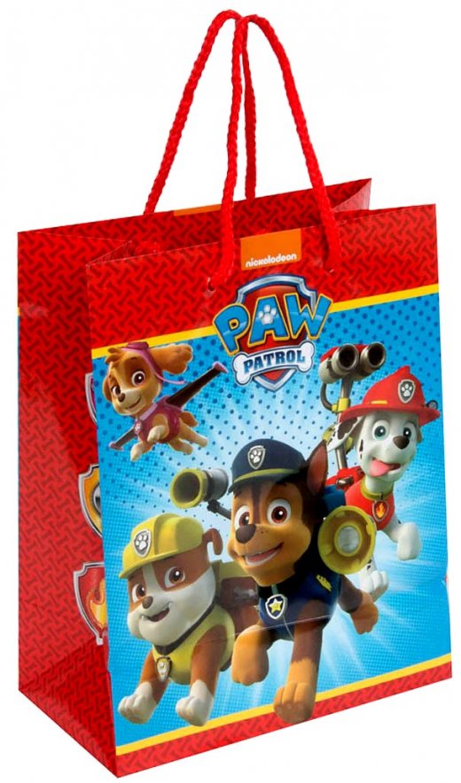 Яркий, красочный пакет с изображением любимых героев известного детского мультфильма «Щенячий патруль» станет лучшей упаковкой для подарка ребенку и создаст неповторимую праздничную атмосферу. На пакете изображены следующие щенки: полицейский Гонщик породы немецкая овчарка, пожарный далматинец Маршал, строитель Крепыш породы английский бульдог и грациозная Скай – кокер-пудель, которая является летчиком - спасателем. По бокам пакета нанесены их значки. Маленькие поклонники мультсериала будут в восторге от такого оформления с их любимыми героями.