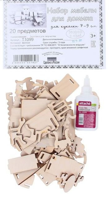 Состав набора: 20 предметов, клей.