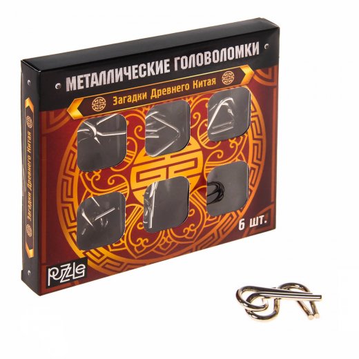 Металлические головоломки "Загадки Древнего Китая" надолго завладеют вниманием, как детей, так и взрослых. Каждый обладатель данного игрового набора может попытаться решить очень интересные, но, в то же время, трудные задачи. Набор состоит из шести головоломок разной формы, выполненных из прочного металла. Суть набора заключается в том, чтобы каждую головоломку разделить на части, а затем собрать в первоначальное положение.