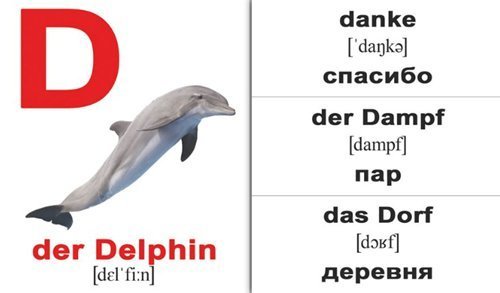 Комплект карточек немецкий язык "Алфавит" создан на основе разработок и исследований Глена Домана. В комплекте имеется 30 двухсторонних карточек. На одной стороне карточек располагается одна из букв алфавита, дополненная картинкой с изображением предмета, название которого с нее начинается и подписью с названием, дополненной транскрипцией. На оборотне карточек имеется по три простых слова с транскрипцией на каждую букву немецкого алфавита.