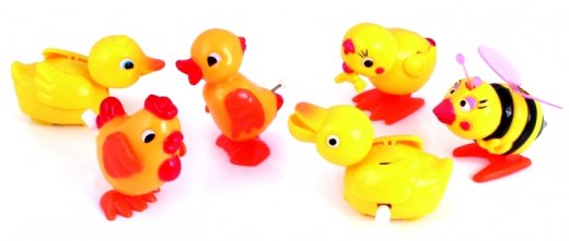 Красочные игрушки в виде представителей животного и насекомого видов оснащены крылышками, которыми они забавно махают под час игр с детишками. Достаточно просто несколько раз повернуть механический завод на игрушке, и она начнет функционировать: самостоятельно передвигаться по игровой территории.