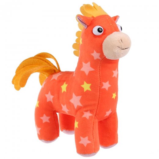 Милая ярко-оранжевая лошадка с весёлым принтом из звёздочек сразу понравится ребёнку, ведь с ней он сможет придумать множество интересных игр. С уже знакомым и любимым персонажем из мультфильма ребёнку будет интересно и весело играть.