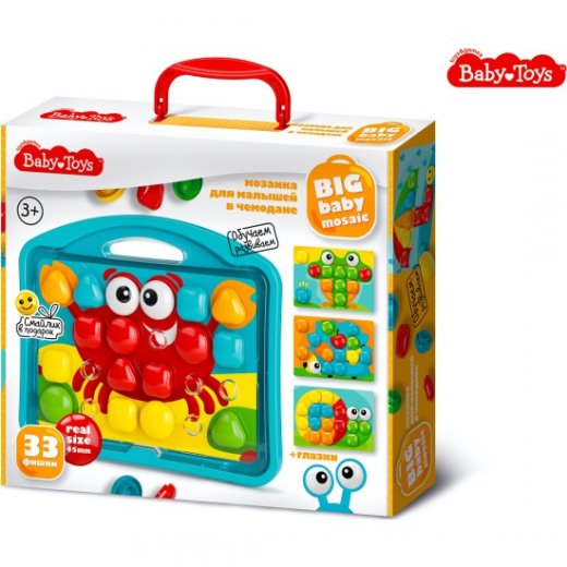 Игра с мозаикой в чемоданчике для самых маленьких «Краб» от Baby Toys помогает развивать такие важные для малышей навыки, как мелкая моторика, логика, творческое мышление. Игра также знакомит ребёнка с основными геометрическими формами и цветами.
