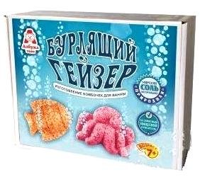Состав набора: минеральная соль, сода, ложечка, лимонная кислота, контейнер, формочки, пищевой краситель.