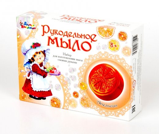 Набор для мыловарения "Апельсин" от производителя "Десятое Королевство" способен заинтересовать любителей необычных экспериментов. Комплект "Рукодельное мыло" позволит детям своими руками изготовить косметический продукт. Творческий процесс довольно прост: ребенку необходимо смешать мыльную основу с красителем в стаканчике, а взрослым - нагреть полученную смесь, затем все это заливается в оригинальные формочки. Готовое изделие можно будет использовать по назначению или в качестве подарка друзьям.