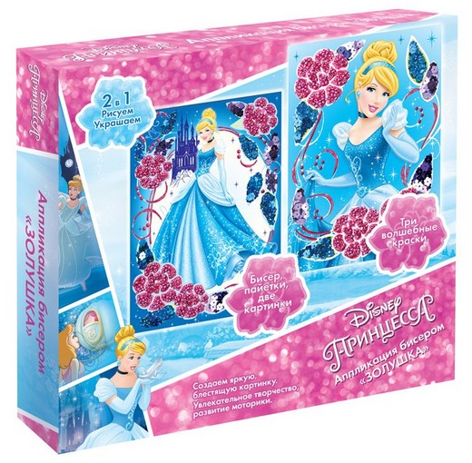 С набором для творчества 2 в 1 "Золушка" можно создать удивительно красочную аппликацию, украшенную пайетками и бисером.Для начала следует раскрасить картинку волшебными красками, а потом декорировать пайетками и бисером. В результате получится прекрасная картинка, которую можно повесить на стену, украсив при этом комнату юной рукодельницы. В процессе изготовления картинки у ребенка развивается творческое мышление, цветовосприятие и мелкая моторика