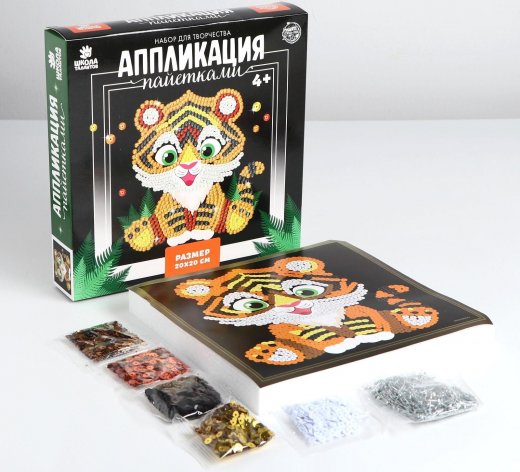 Купить Набор для творчества Аппликация пайетками Тигренок в Новосибирске Вы можете в магазине развивающих и настольных игр "Игры Почемучек"