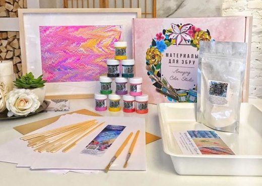 Набор для эбру поможет научиться создавать произведения искусства с помощью воды и красок. Техника Эбру - искусство рисования на воде, сочетает в себе живопись и эстамп (оттиск на любой поверхности), позволяет воплотить свои эмоции и чувства в картинах с невероятной точностью. С широкой гаммой красок, которая входит в набор, Вы создадите неповторимый рисунок-сказку. С "Эбру-Сказка" совершенно не важен Ваш уровень подготовки, т.к. набор подойдет и начинающим, и тем, кто уже знаком с рисованием на воде. Также наборы для Эбру являются хорошими интересными подарками детям и взрослым.