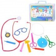 Комплект: стетоскоп, очки, зажим, шприц, градусник, прибор окулиста.
