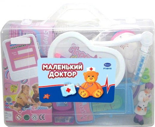 Набор доктора – поможет ребенку почувствовать себя настоящим врачом, спасающим человеческие жизни, и послужит хорошим подарком для ребенка. В стильный рюкзачок помещаются все необходимые предметы: градусники, шприцы, ножницы, пузырьки, пилюли и т.д. Добрый доктор приложит стетоскоп к плюшевой груди любимого мишки и послушает, как бьется маленькое плюшевое сердечко. Ни один любимец не останется без внимания!